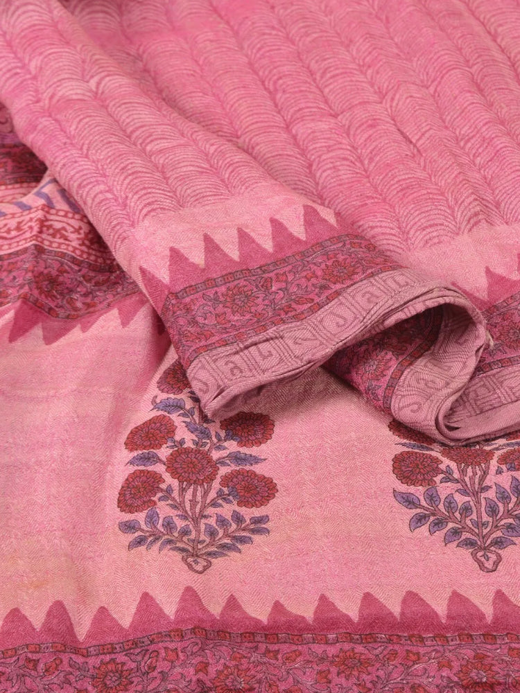 Pink lightweight wool as shown. Complementary toned silk lining.