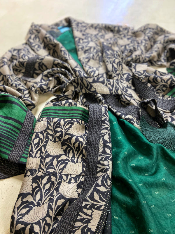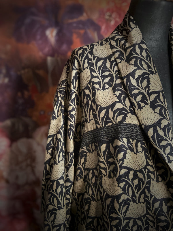 Each of these pieces is created from a vintage 100% wool saree. The design is very considered, with the cut engineered to make the best use of the various areas of beautiful printed design on the saree. I will spend some hours before cutting trying out different pattern layouts to ensure the most pleasing finished effect.