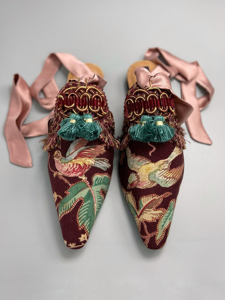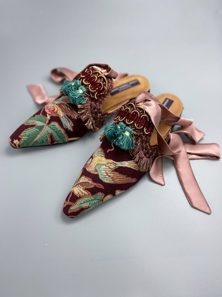 Los ingredientes Tenga en cuenta que estos zapatos están hechos de textiles antiguos, que a menudo han tenido una vida anterior que se remonta a siglos atrás, por lo que puede haber alguna pequeña mancha o pequeño pinchazo en la superficie de la tela. Estos de ninguna manera afectan su belleza y puede estar seguro de que no comprometen la integridad del material. Cualquier pequeña área de daño real o adelgazamiento se repara con un pequeño parche bordado (¡una de mis características favoritas!), Y esto siempre se menciona claramente en la descripción.