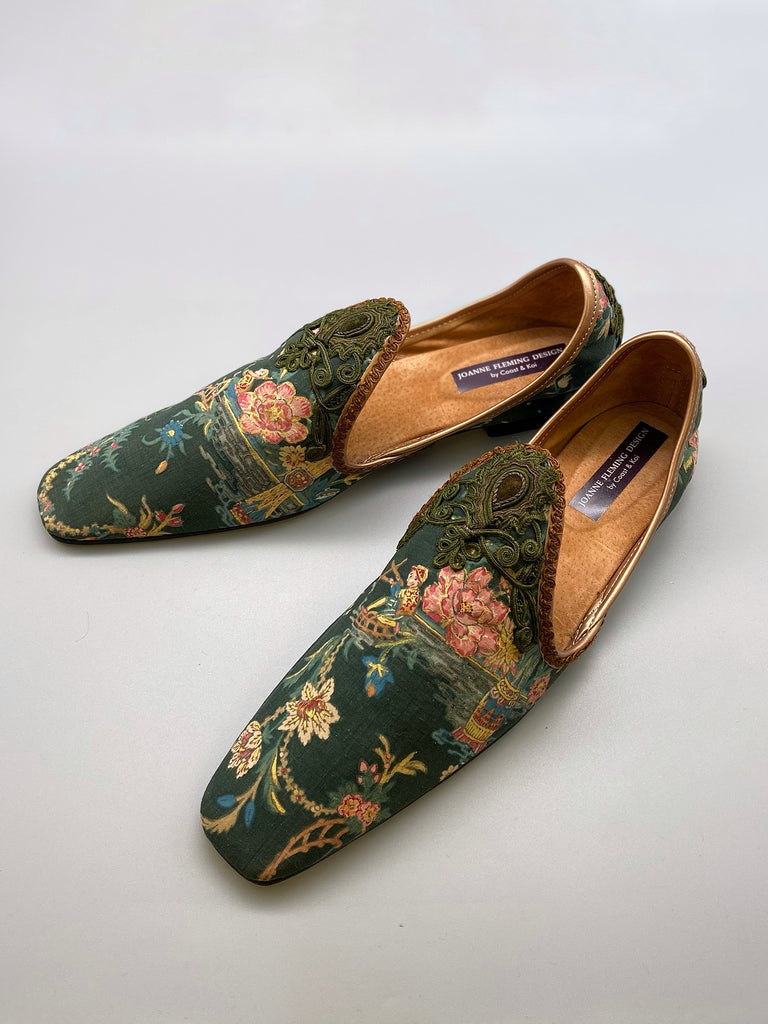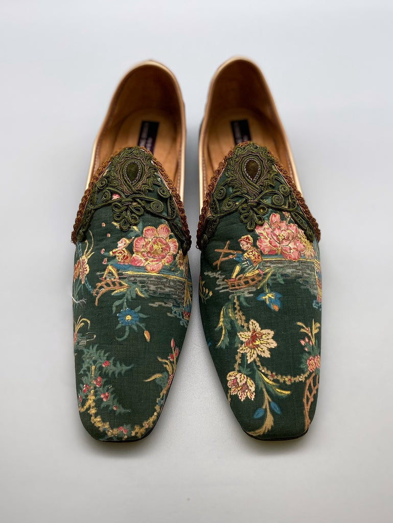 Les ingrédients Veuillez noter que ces chaussures sont créées à partir de textiles anciens, qui ont souvent eu une vie antérieure remontant à des siècles, il peut donc y avoir des taches mineures ou petite piqûre d'épingle à la surface du tissu. Ceux-ci n'altèrent en rien leur beauté et vous pouvez être sûr qu'ils ne compromettent pas l'intégrité du matériau. Toute petite zone de dommage ou d'amincissement réel est réparée avec un petit patch brodé (une de mes caractéristiques préférées !), Et cela est toujours clairement mentionné dans la description.