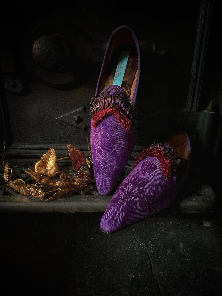 Les ingrédients Veuillez noter que ces chaussures sont créées à partir de textiles anciens, qui ont souvent eu une vie antérieure remontant à des siècles, il peut donc y avoir des taches mineures ou petite piqûre d'épingle à la surface du tissu. Ceux-ci n'altèrent en rien leur beauté et vous pouvez être sûr qu'ils ne compromettent pas l'intégrité du matériau. Toute petite zone de dommage ou d'amincissement réel est réparée avec un petit patch brodé (une de mes caractéristiques préférées !), Et cela est toujours clairement mentionné dans la description.