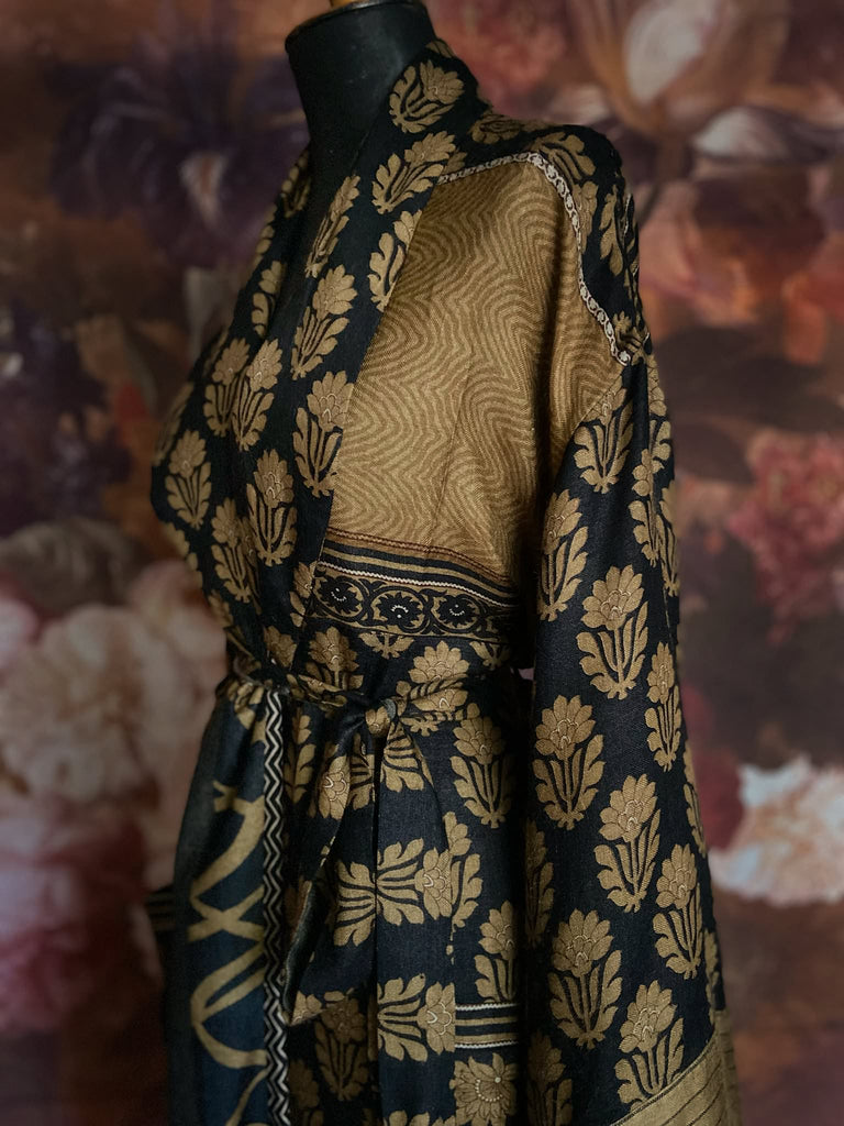 Fine Wool & Silk Robe; Charcoal & Ochre