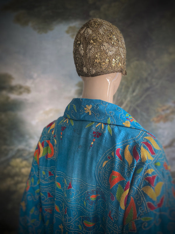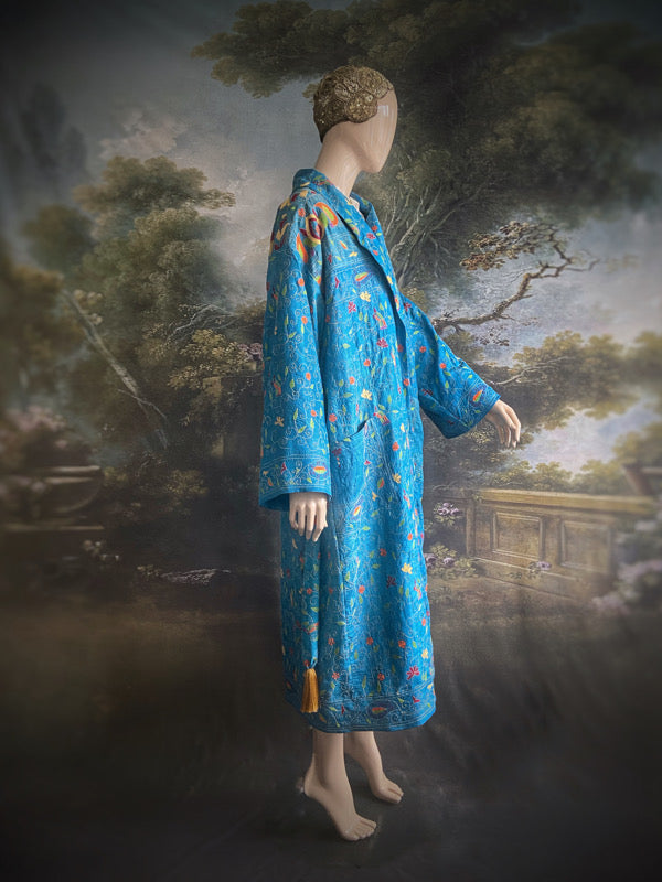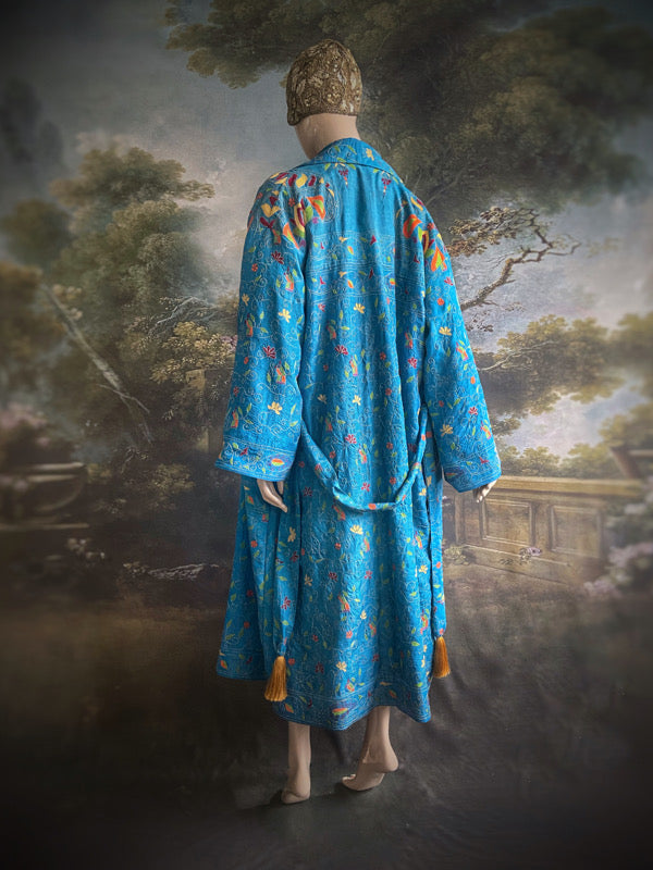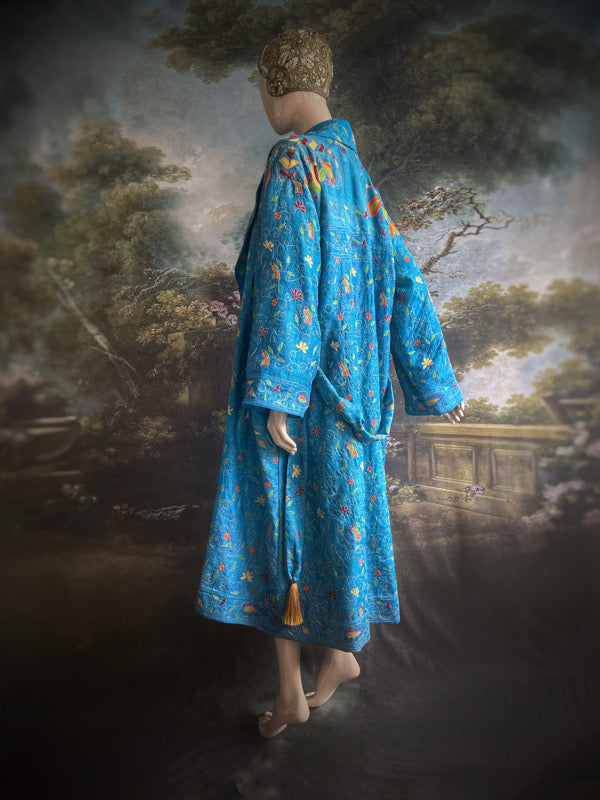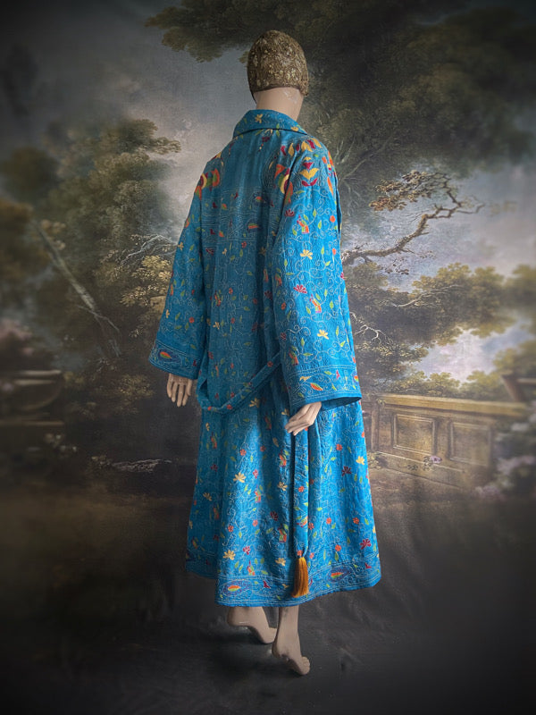 Hand Embroidered Royal Blue Kantha Silk Robe